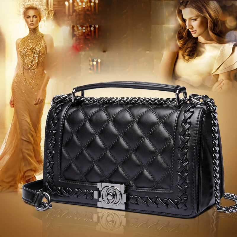 معرض من حقيبة للنساء حقائب يد جلدية 2018 أزياء العلامة التجارية مصمم شعرية حقائب كتف عارضة مبطن سلسلة شنطة يد سوداء الأعلى مقبض حقيبة