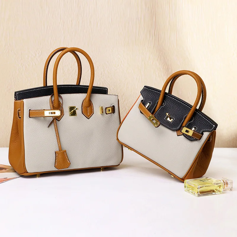 المنتجات ذات الصلة ل Top-Handle Bags و الكلاسيكية حقيبة للنساء الفاخرة عالية الجودة حقيقية جاكيت جلدي-مقبض حقيبة أناقة حقيبة كتف اليد لينة جلدية التباين اللون