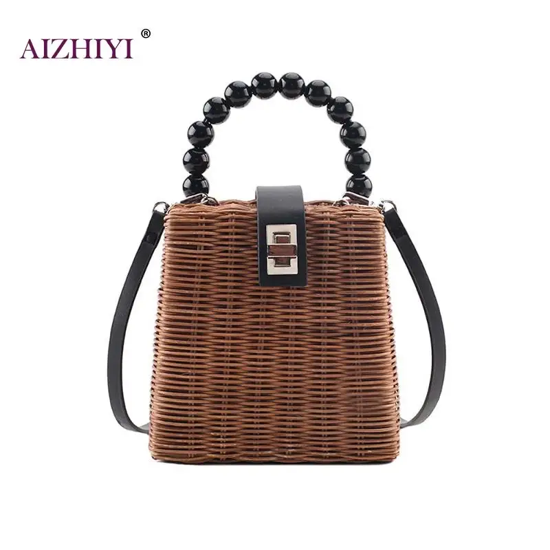 المنتجات ذات الصلة ل Top-Handle Bags و الإناث الأزياء عارضة الخوص المنسوجة شنطة كتف الصيف الشاطئ النساء السيدات الخرز صغيرة رسول Crossbody أعلى-حقائب بيد