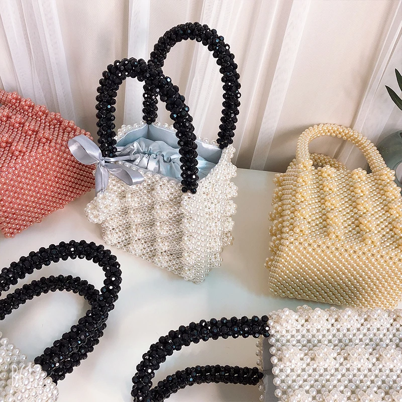 المنتجات ذات الصلة ل Top-Handle Bags و خمر Ins اليد-المنسوجة مطرز مربع اليد Abs أعلى-حقائب بيد الاكريليك النساء حزب اللؤلؤ الوردي الأبيض حقيبة الكريستال