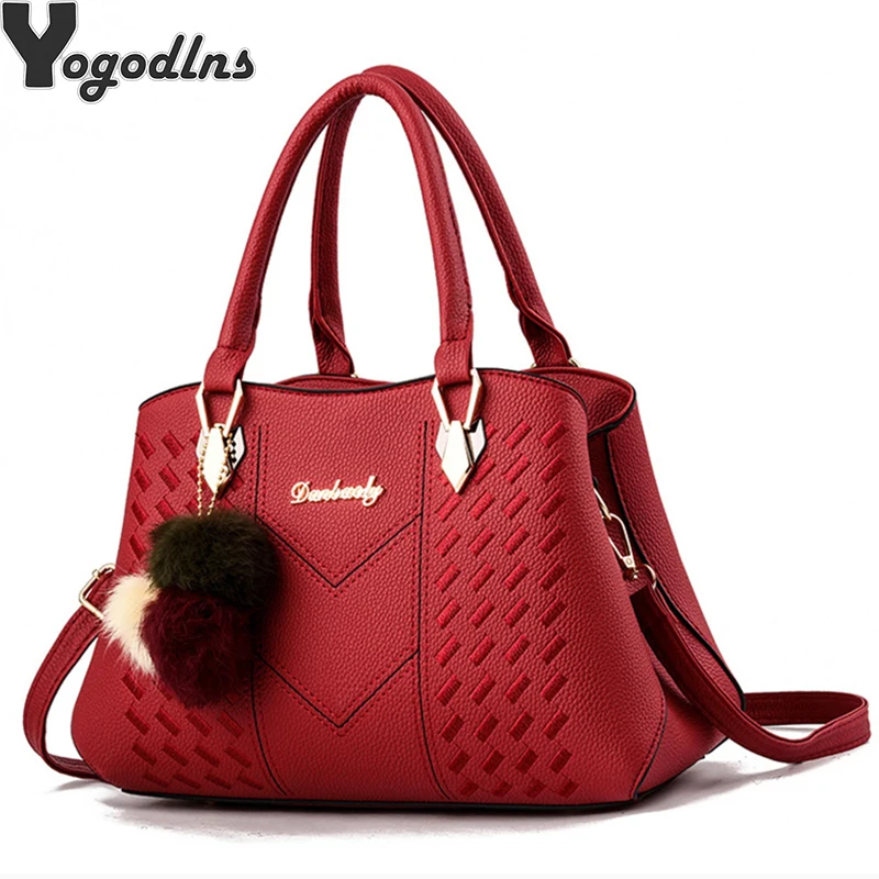 صور ل المرأة حقيبة يد الشعر الكرة حقيبة كتف للنساء 2019 أعلى مقبض حقيبة بو الجلود السيدات حقيبة ساعي عالية الجودة التطريز حقيبة