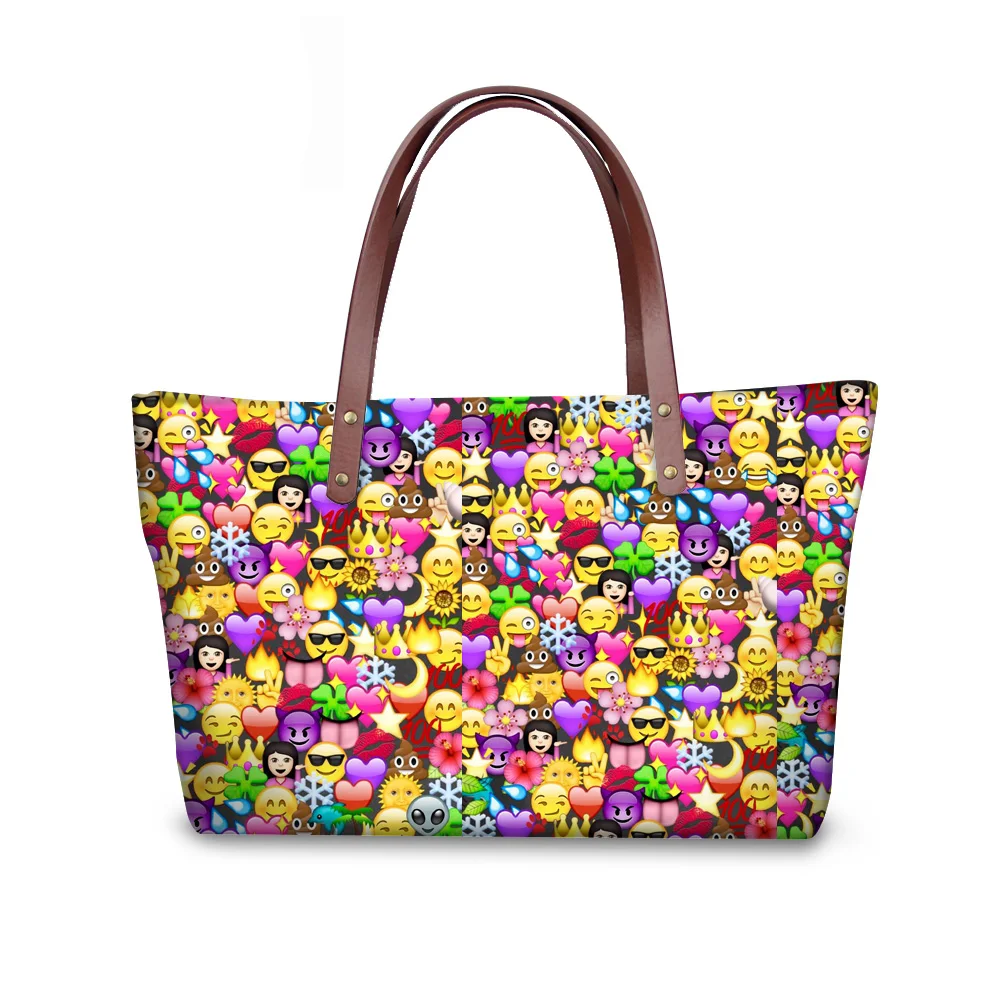 صور ل عارضة حقائب السيدات اليد حقيبة للنساء حقيبة كتف 3D الرموز التعبيرية طباعة كبيرة أعلى-حقائب بيد حقيبة حمل على الشاطئ Sac فام