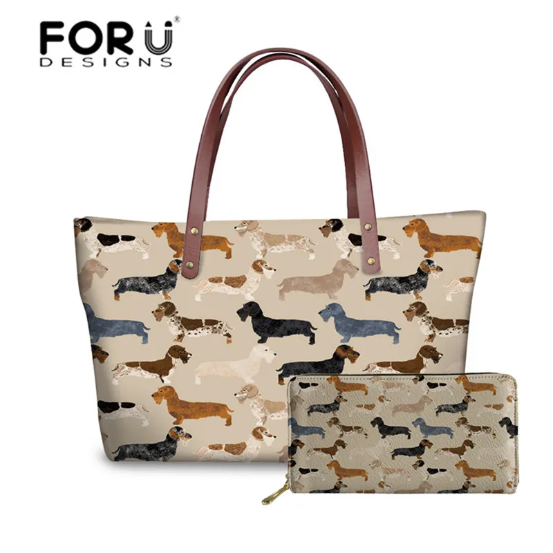 معرض ل FORUDESIGNS حقائب و محفظة المرأة الألماني الكلب الطباعة حقيبة كتف أكياس للسفر المنظم حقيبة يد الإناث أعلى-حقائب بيد