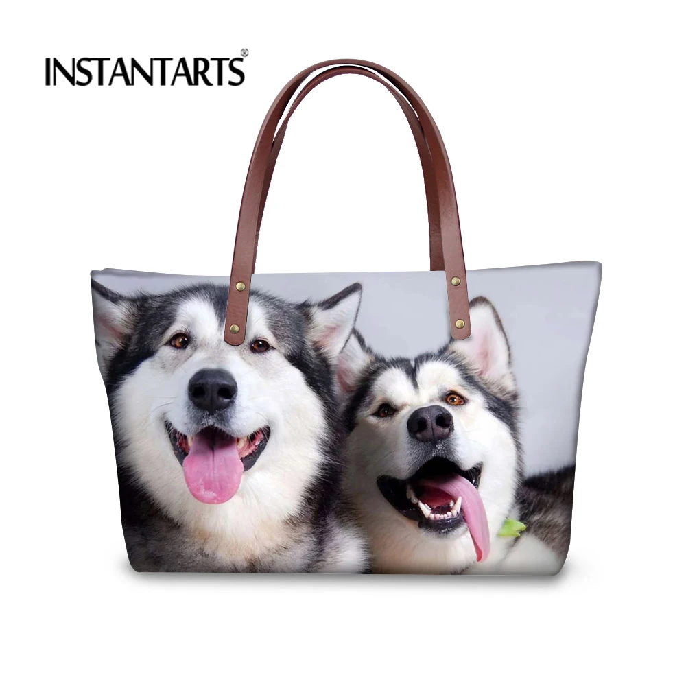 صور من Instantarts النساء قدرة كبيرة حقيبة لطيف السيبيري مطبوعة السيدات حمل أكياس التسوق أزياء ماركة تصميم الأعلى مقبض حقيبة