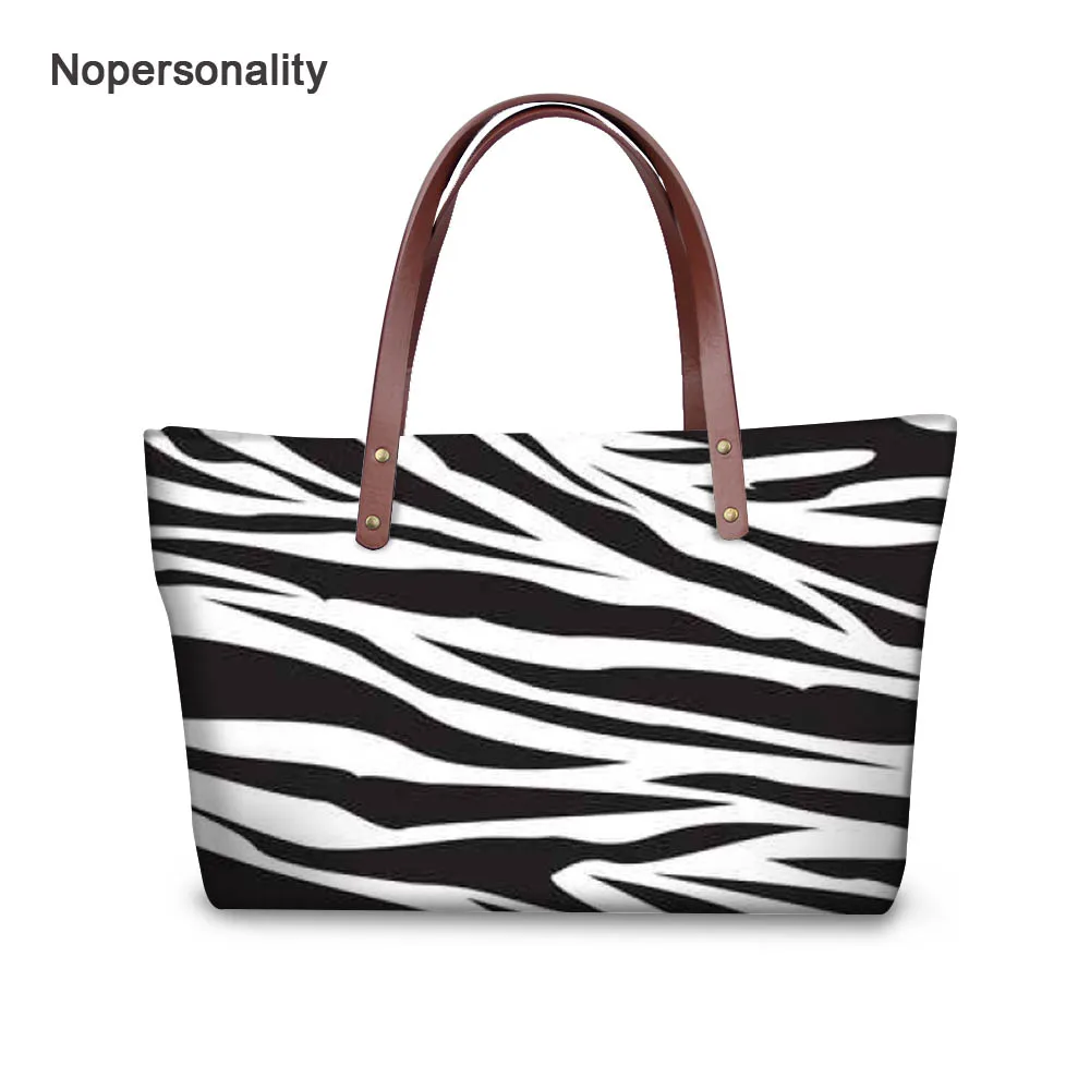 شراءمعلومات اضافية Nopersonality مخطط زيبرا طباعة حقيبة يد للنساء عارضة الإناث السيدات أعلى-حقائب بيد الكلاسيكية فام حقائب كتف