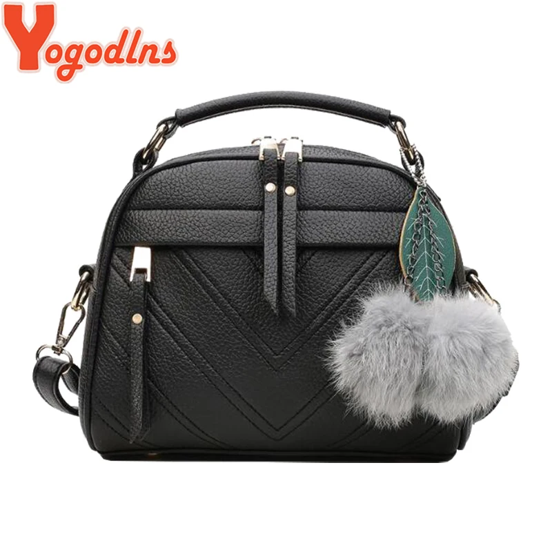 معرض من Yogodlns جديد أزياء والجلود الإناث أعلى-حقائب بيد صغيرة المرأة Crossbody حقيبة الشعر الكرة حقيبة كتف لطيف رسول حقائب