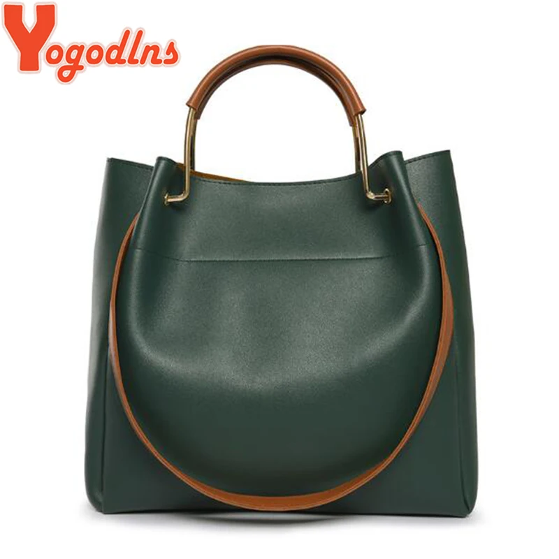 معرض ل Yogodlns الأزياء الإناث حقيبة كتف جلد حقيبة يد المرأة أسلوب بسيط حقيبة ساعي الأعلى مقبض قدرة كبيرة حقائب اليد