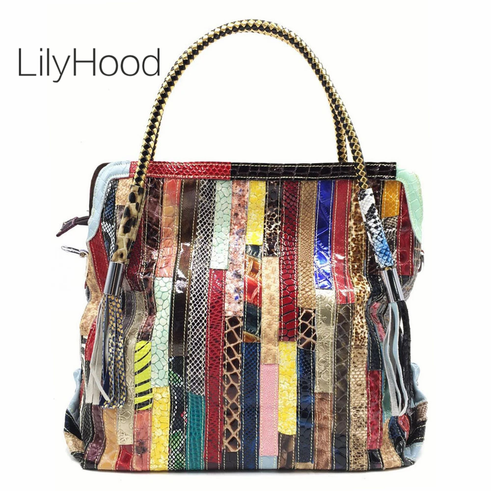 شراءمعلومات اضافية متعددة اللون خليط جلد طبيعي حقيبة يد المرأة الأفعى سحلية نمط الطبيعي جاكيت جلدي-مقبض حقيبة الإناث قدرة كبيرة حمل