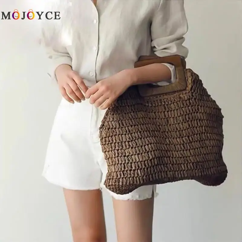 وانت paraشراء Top-Handle Bags, entonces خمر كبيرة قدرة اليد النسائية المنسوجة حقائب أعلى-حقائب بيد البوهيمي ورقة حبل سومر حقيبة شاطئية tal vez introducir please