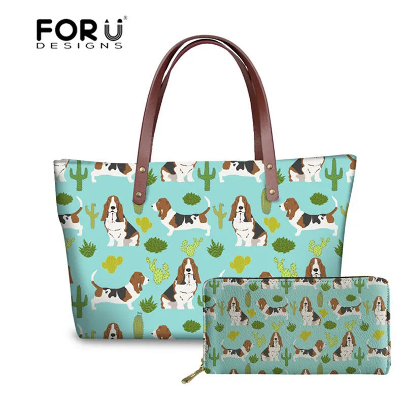 استعارات ل FORUDESIGNS أعلى-حقائب بيد الباسط كلب الصبار الحلو كلب الطباعة حقائب كتف للنساء عارضة محفظة و حقائب الإناث