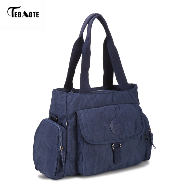 صور من Tegaote الاولى مقبض المرأة حقيبة سعة كبيرة الكتف رسول حقيبة المرأة مصمم النايلون الشاطئ عارضة حقيبة تسوق حمل الإناث