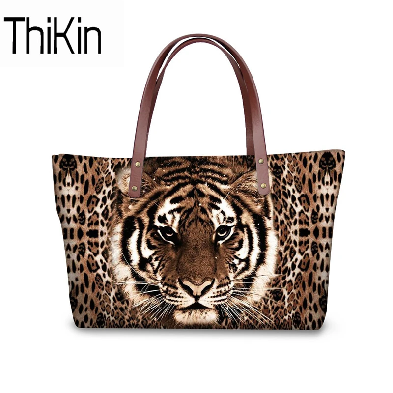 صور من Thikin عارضة حمل حقيبة المرأة بو الجلود حقائب لسيدة يد كبيرة حقائب اليد 3d النمر طباعة الإناث شاطئ الأعلى مقبض أكياس