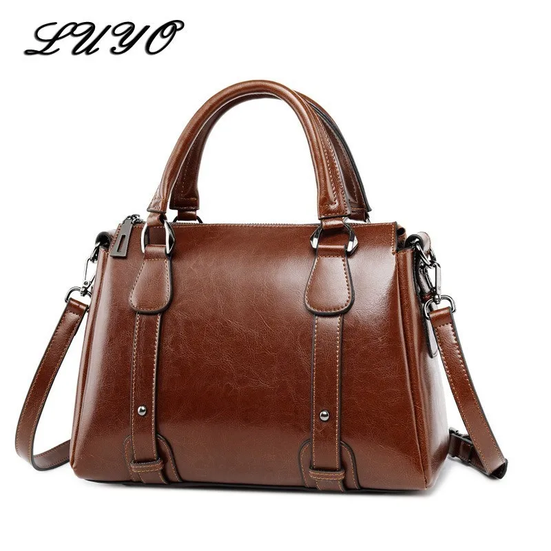 شراءمعلومات اضافية UYO خمر زيت شمعي حقيقية حقيبة جلدية الأعلى مقبض الفاخرة حقائب كتف مصمم الإناث حقائب سيدات حقيبة نسائية صغيرة حقيبة