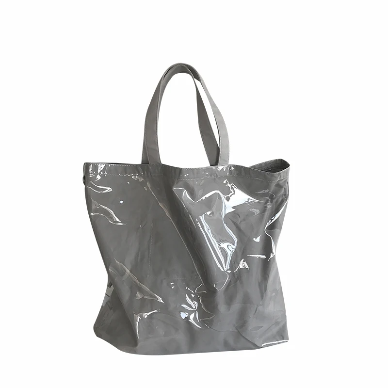 وانت porالبحث عن معلومات Top-Handle Bags, en ese momento النساء PVC التصحيح قماش كبيرة حمل الفضة رمادي شاطئ حقيبة المحمولة الكتف حقيبة تسوق الأعلى مقبض حقائب عالية قدرة حقيبة es posible efectuar appeal